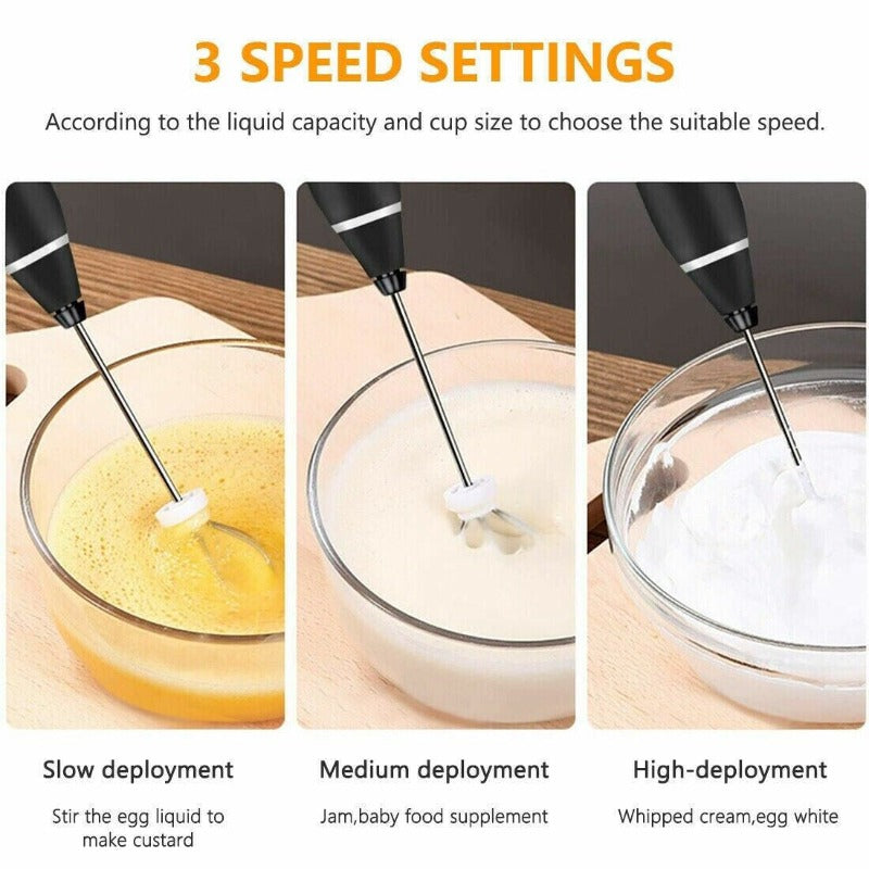 3 Velocidades Ajustables: Este espumador de leche eléctrico ofrece 3 velocidades ajustables. Puedes seleccionar la velocidad que necesites, ya sea para leche espumosa, té matcha, bebidas en polvo de proteína o batir huevos.